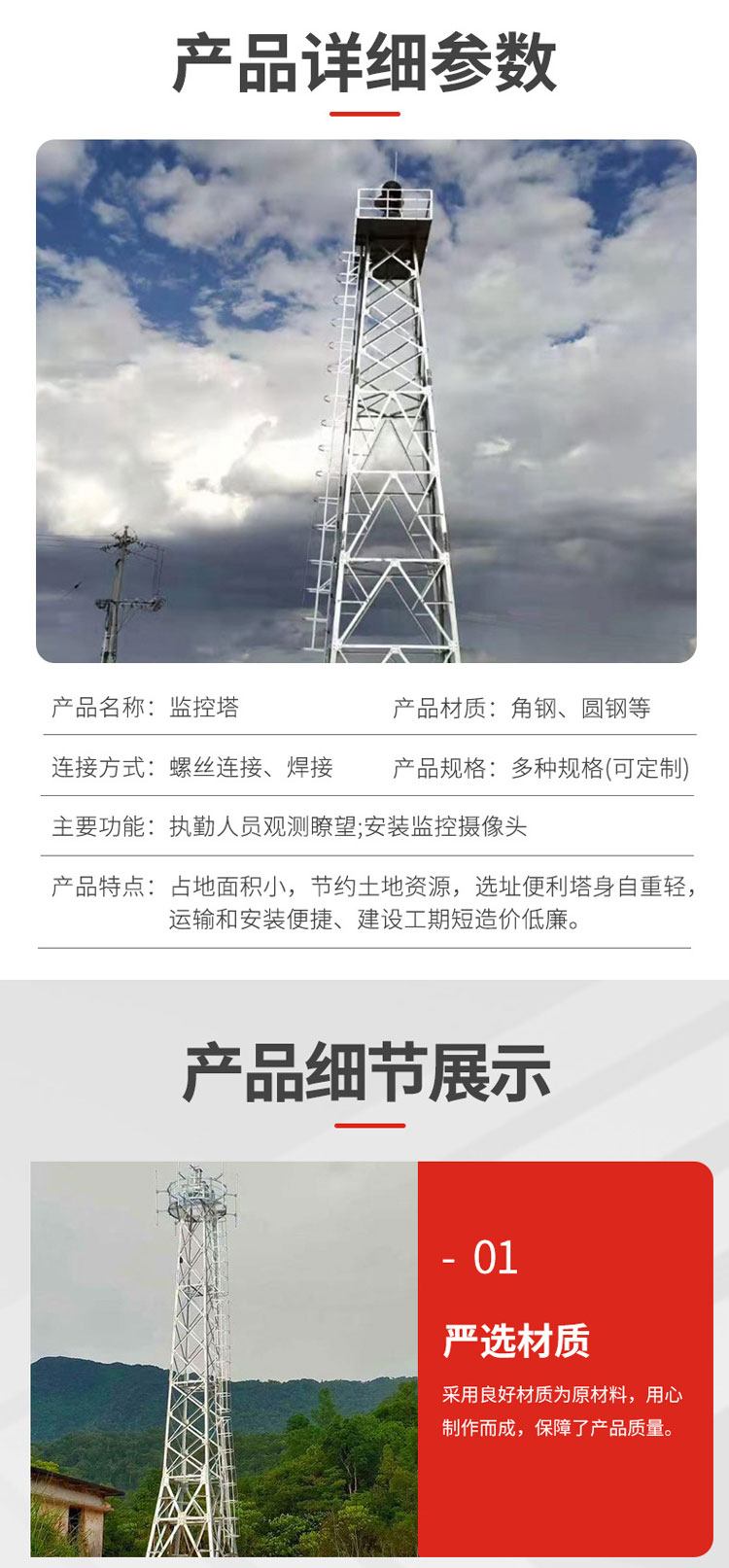 油田安防监控塔 角钢远程检测塔 建设工期短 寿命长 时通